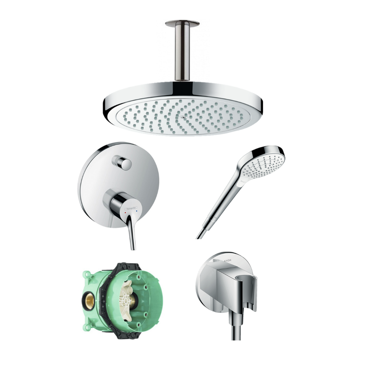 به جز اینها بازوی سقفی و قالپاق آن، سردوش گرد، پایه شلنگ، شلنگ حمام و همین طور دوش دستی سه حالته و رابط دیواری آن را در ست Talis S داریم.