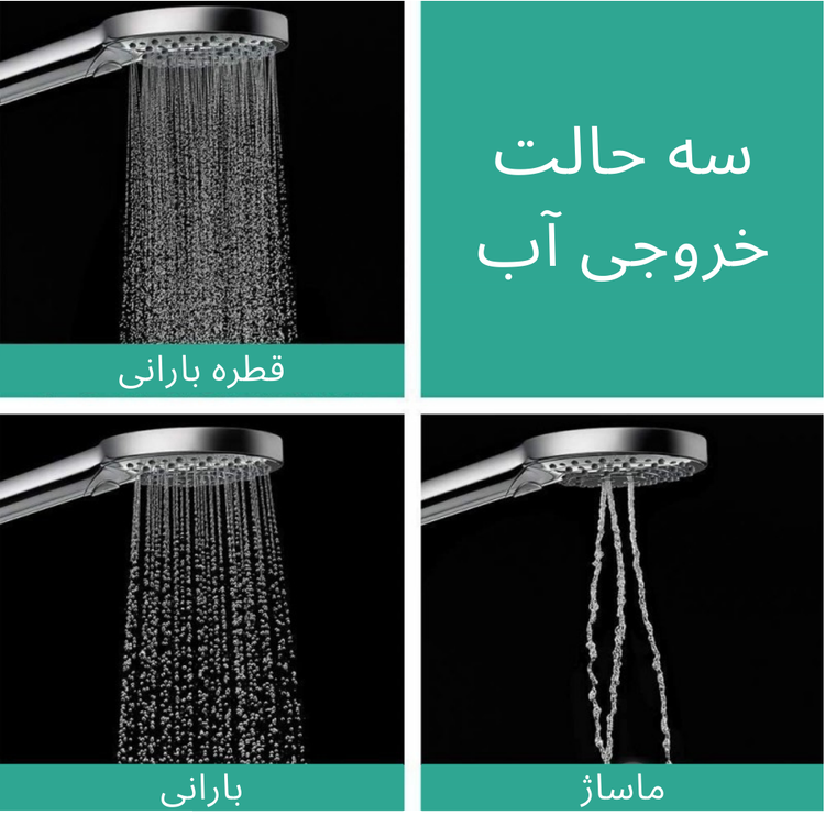 - پاشش آب قطره بارانی: این مدل پاشش معمول و بارانی گوشی دستی حمام می باشد که بیشترین استفاده از همین حالت است.