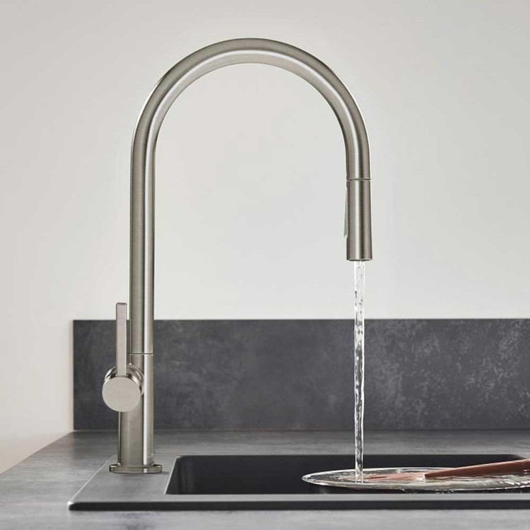 شیر ظرفشویی شلنگدار که در اصطلاح به شیر شاوری معروف است. شیرهای شاوری دارای سردوش جدا شونده متحرک به گونهای است که از شیر جدا می شود و به راحتی تمام سینک را شستشو می دهد. طراحی شیر آشپزخانه هانس گروهه مدل Talis M به سبک مدرن و مینیمال با کیفیت ابکاری بسیار بالا است. آن دسته از افراد که سبک مدرن را می پسندند و از خاص بودن لذت می برند، شیر شاوری هانس گروهه مدل Talis M انتخاب مناسبی است. استانداردهای تولید و کنترل کیفیت در گروه شیرآلات هانس گروهه در بالاترین حد ممکن تعیین شده است و کلیه محصولات قبل از خروج از خط تولید تحت سخت ترین آزمایشهای کنترل کیفیت قرار می گیرند. از دیگر مزایای این محصول میتوان به آلیاژ برنج بهکار رفته در ساخت آن اشاره کرد که دربرابر خوردگی، زنگزدگی و اکسید شدن مقاومت بسیار بالایی دارد.